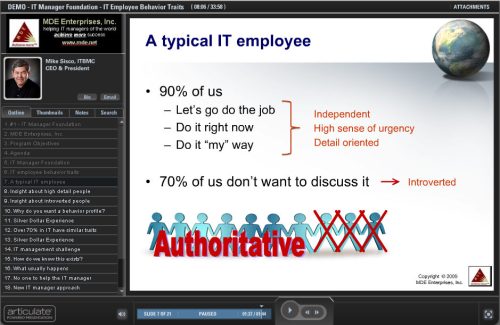 View the online segment out of my IT Manager Institute Self Study below to learn about IT employee work behavior tendencies.