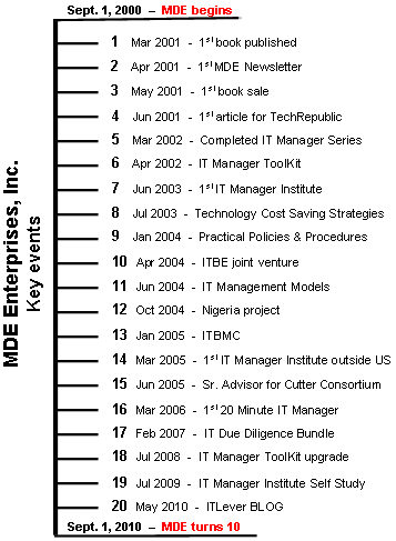 Today, we are a 10-year old company, , , a significant achievement in that there are thousands of IT managers around the world who use my practical IT management processes and tools. This feat probably amazes me more than anyone because I consider myself to be just a small town country boy at heart.
