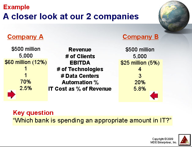 Certainly Company B is spending a lot more money than Company A, , , but even on the slide with very little information I can see that this IT manager has more to deal with.