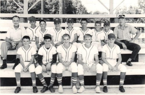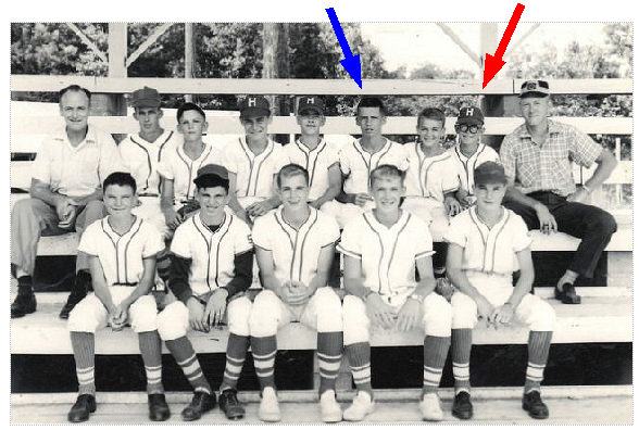 The red arrow points to me and the blue arrow points to my brother, Larry. I was a little guy as you can see but made up for it by hustling and working harder than the bigger guys. Even my brother who is a year younger always seemed bigger than me.