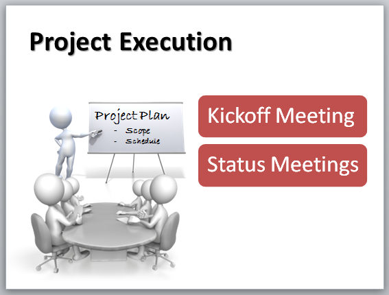 Slide #7: Phase 3 is Project Execution. Executing the project means kicking off the project to get everyone on the same page and manage your team’s expectations and then monitoring and shepherding the project along to success with project status meetings.