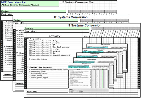 In the sample there is a generic project schedule along with an actual project schedule sample used for a past systems conversion. Feel free to use these to help you in your next systems conversion or installation.
