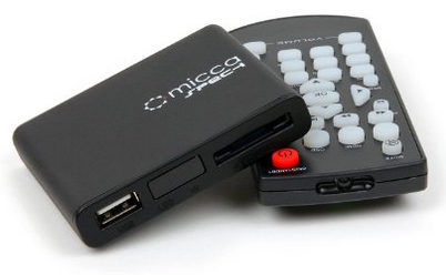 The device is a Micca Speck 1080p Full-HD Ultra Portable Digital Media Player For USB Drives and SD/SDHC Cards. It costs only $39.95 at Amazon.com and allows you to play a digital movie on any TV from a flash drive or from your SD/SDHC cards you use when filming with a digital camera. Small, easy to use and includes a remote control.